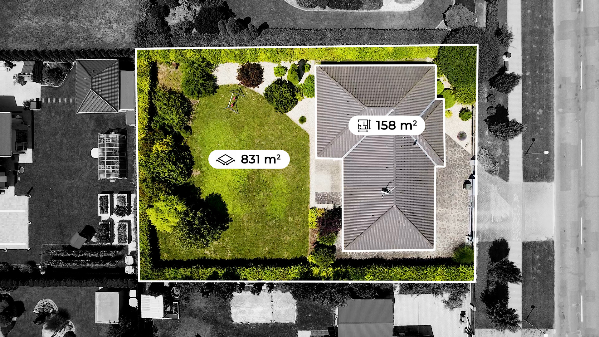 - Velká zahrada: 831 m² se zavlažovacím systémem, okrasné keře a stromy, ideální pro zahradničení, venkovní hry a relaxaci