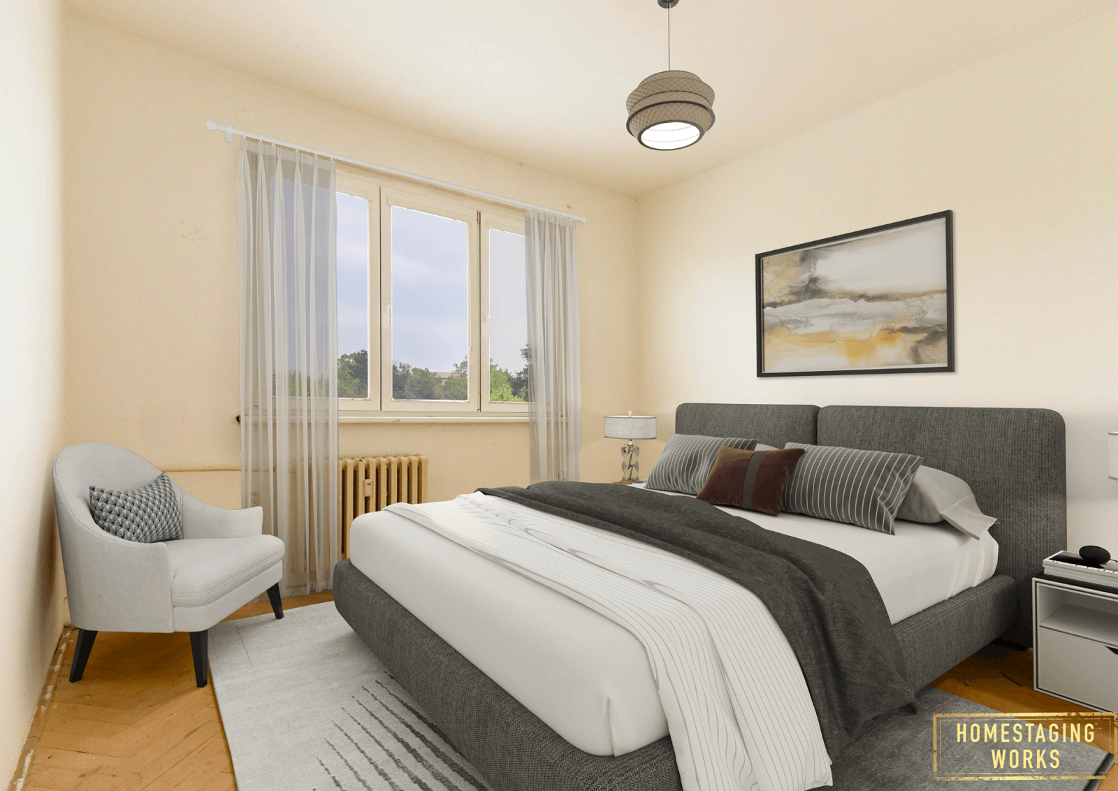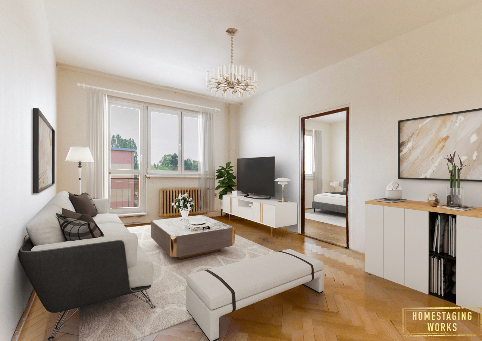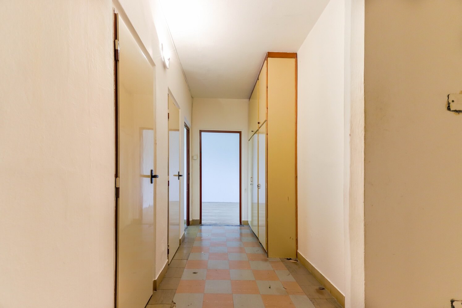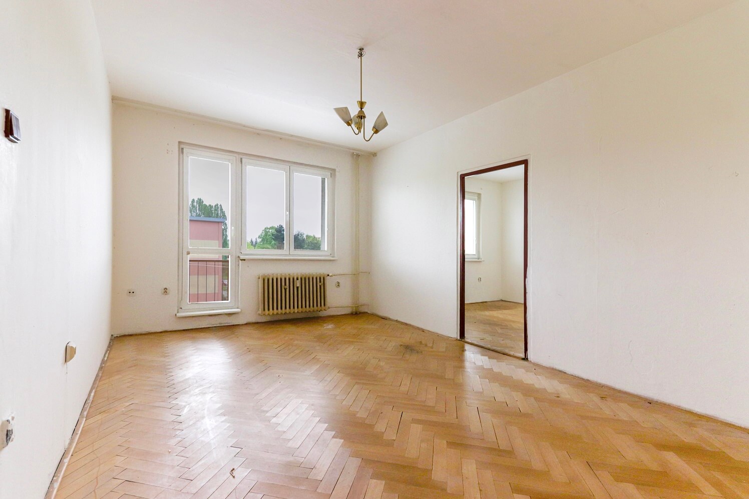 Byt se nachází ve 3.patře panelového domu bez výtahu. Byt je v původním stavu, vyklizený, v chodbě jsou původní vestavné skříně a je určen buď k investici nebo po rekonstrukci na bydlení, kdy se novému majiteli nabízí rozšíření koupelny a získání tak většího prostoru v kuchyni např. na rohovou kuchyňskou linku. Na uvedených fotografiích je zobrazen reálný stav a pro představu jsme použili i virtuální staging.