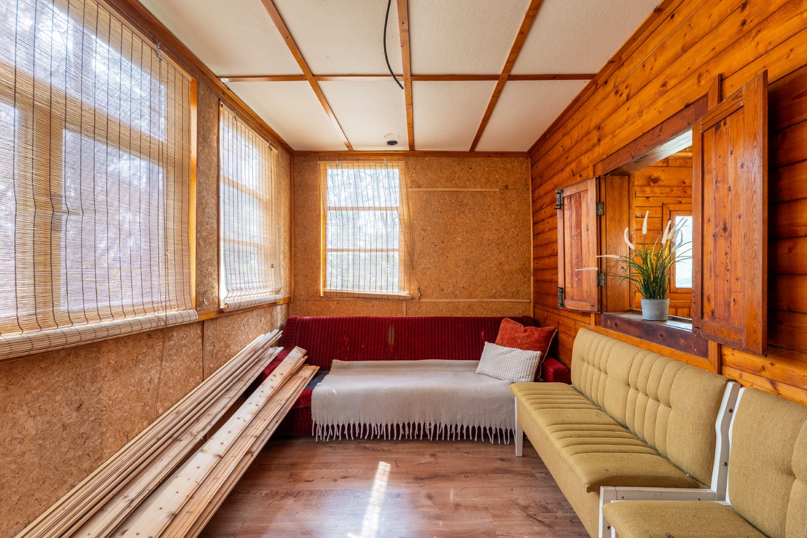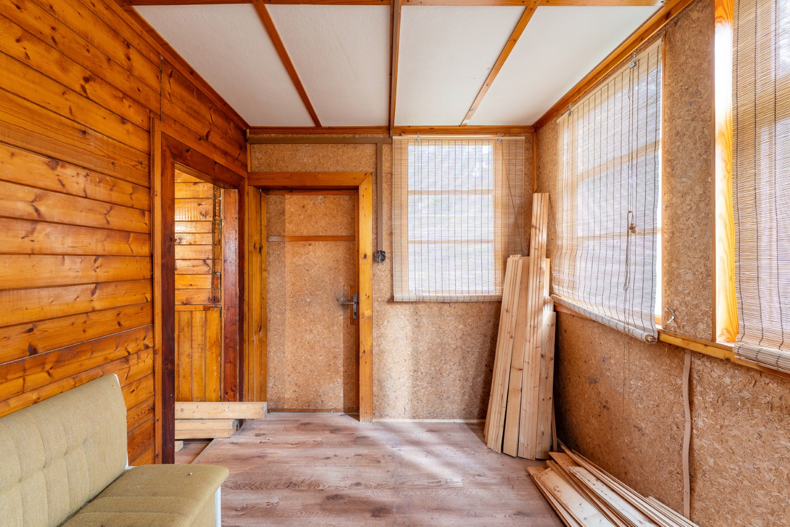 🏡 Chatka se zastavěnou plochou 37 m² a orientační obytnou plochou cca 32 m² nabízí verandu, hlavní obytnou místnost a další samostatný prostor vhodný například jako kuchyň, ložnice nebo praktické zázemí. WC je přístupné zvenku. Součástí je také menší sklep cca 2 m².
