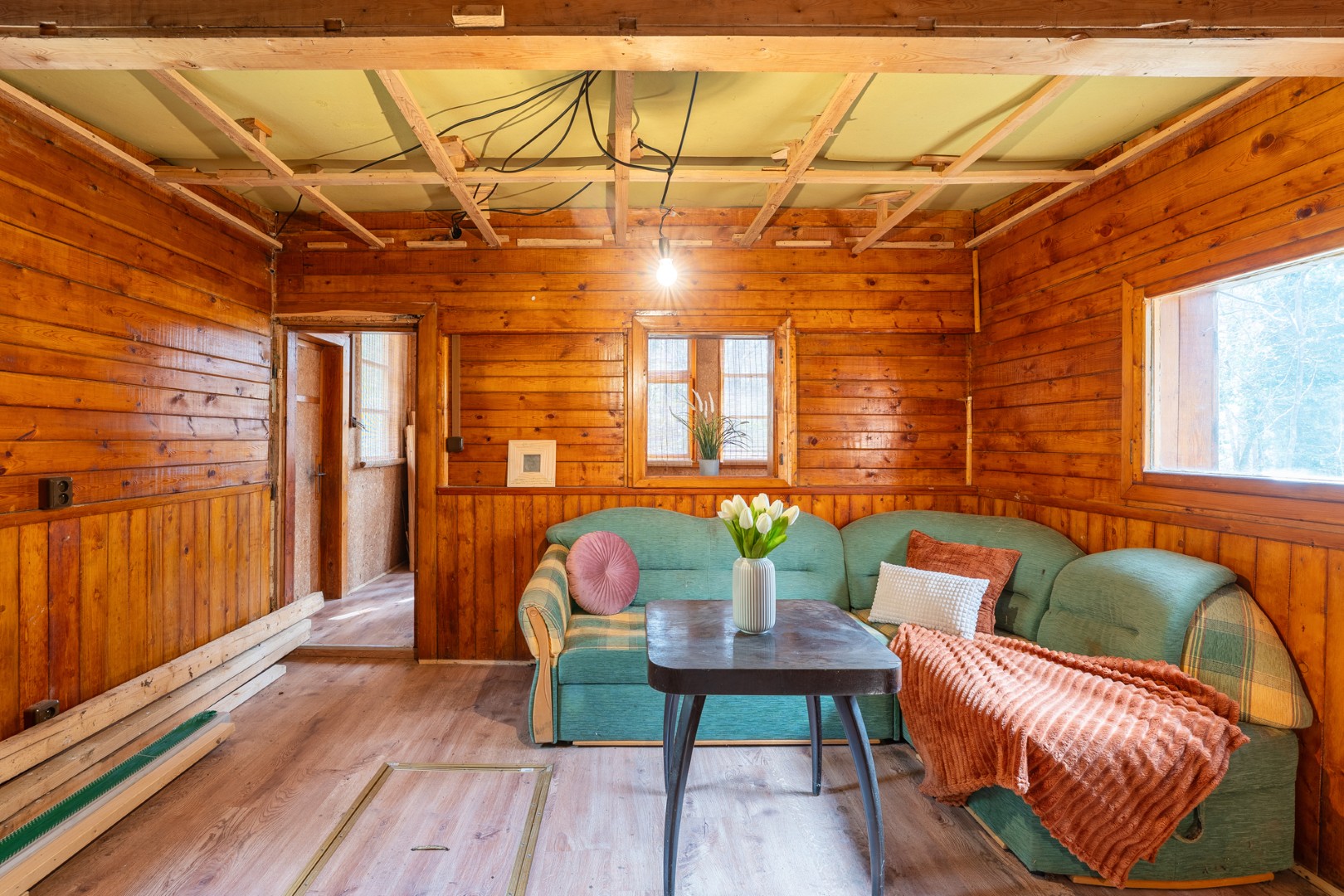 🌲 Pozemek pod stavbou není ve vlastnictví a je užíván na základě pronájmu od soukromé osoby za 2 000 Kč ročně. Spolu s chatkou je navíc možné využívat i okolní plochu pozemku o výměře přibližně 100 m². Současný majitel již započal s rekonstrukcí, kterou z časových důvodů nedokončil, a k dispozici je také stavební materiál pro další úpravy.