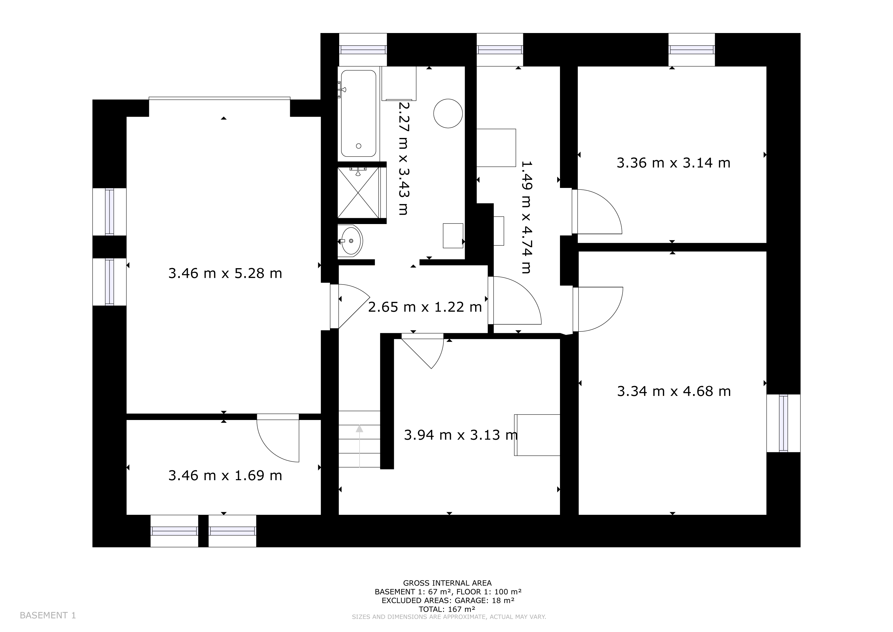 - 5 dalších místností – využívané jako sklad dřeva, potravin, dílna nebo úložné prostory