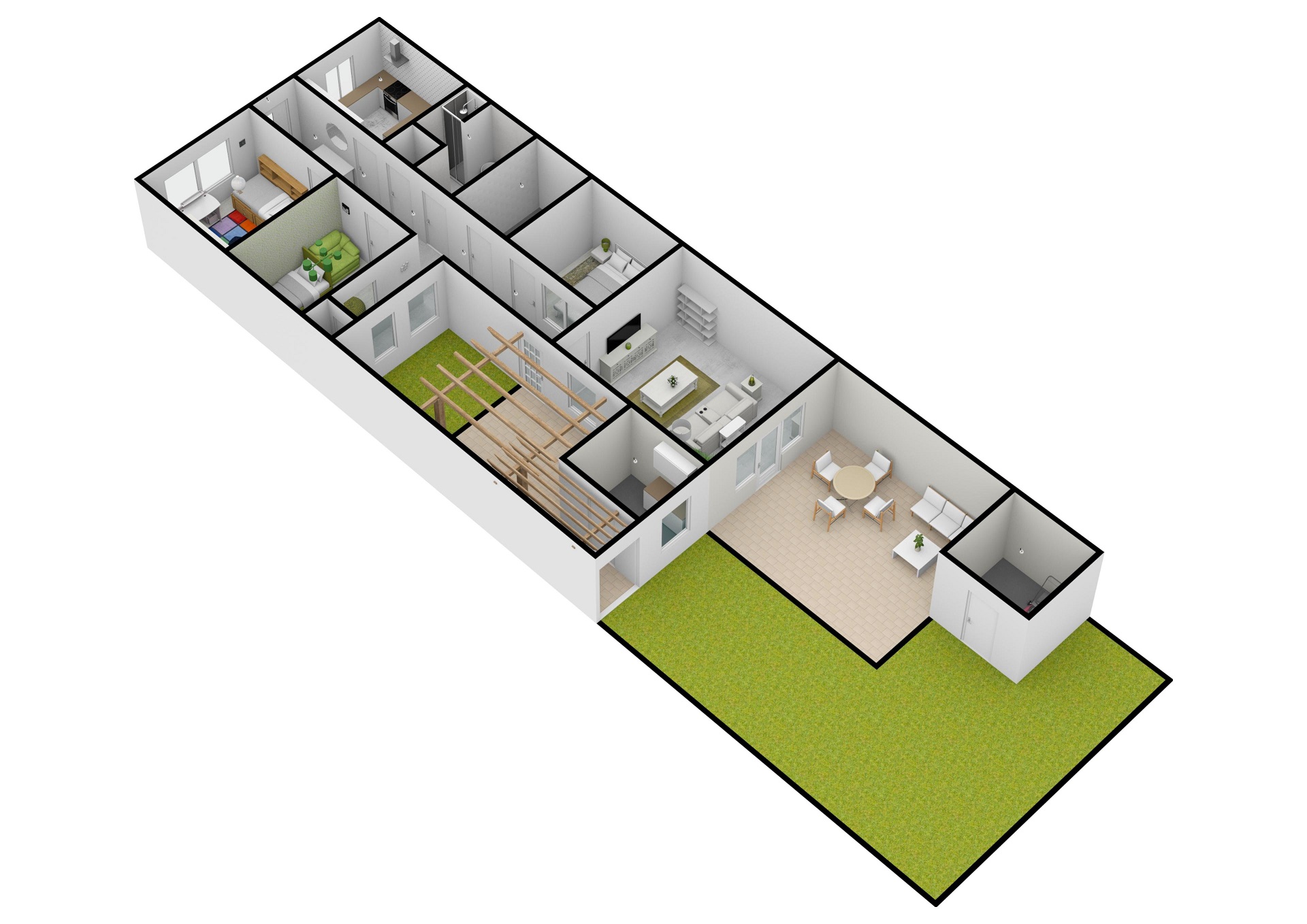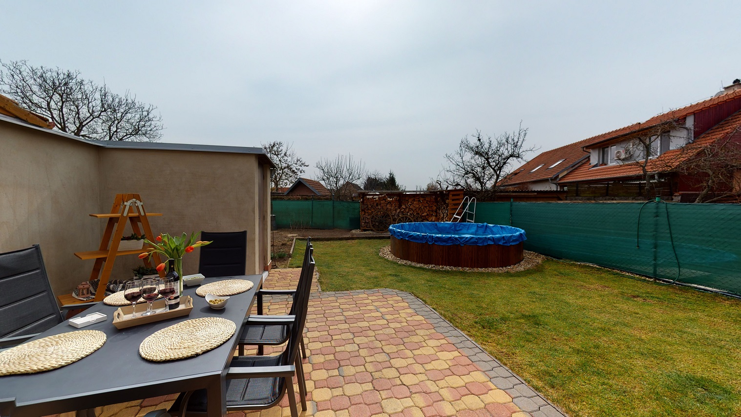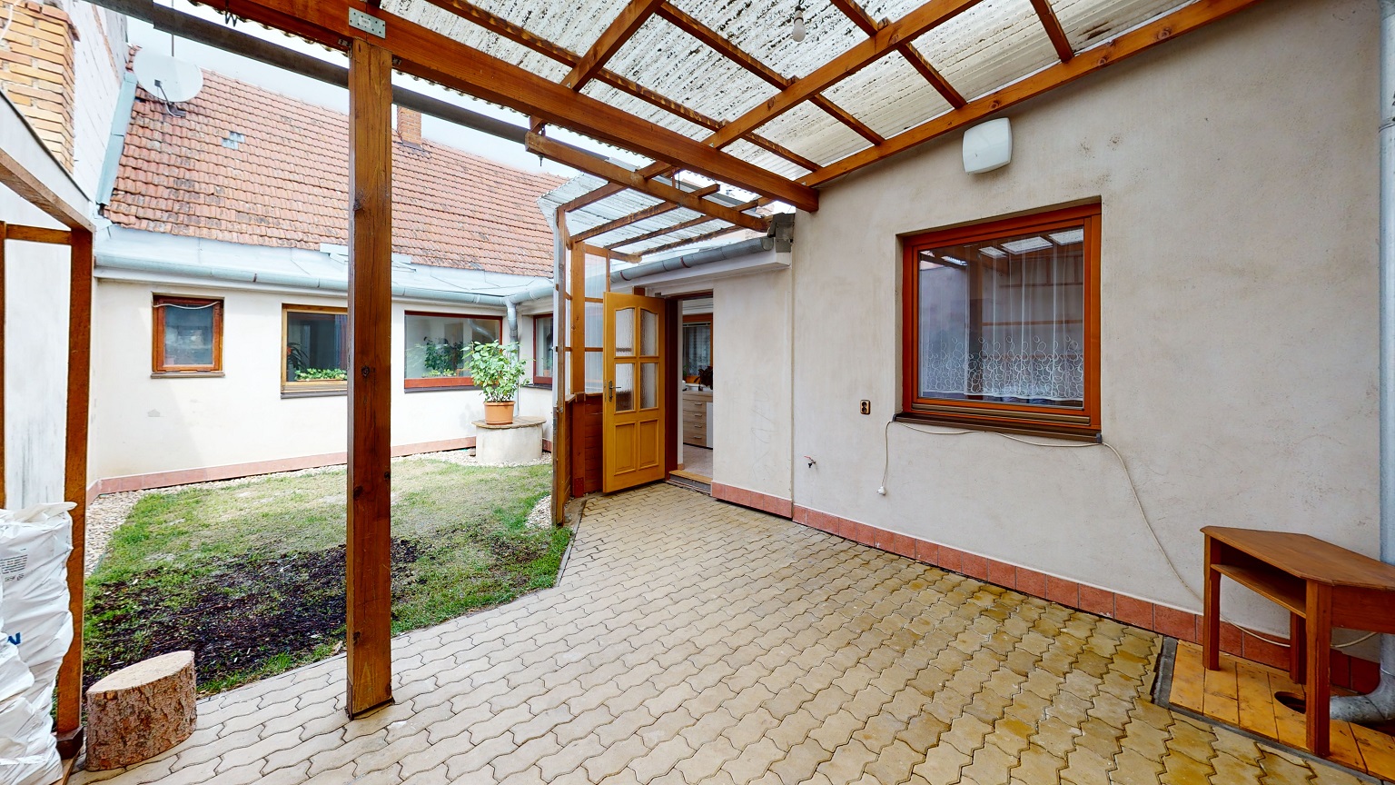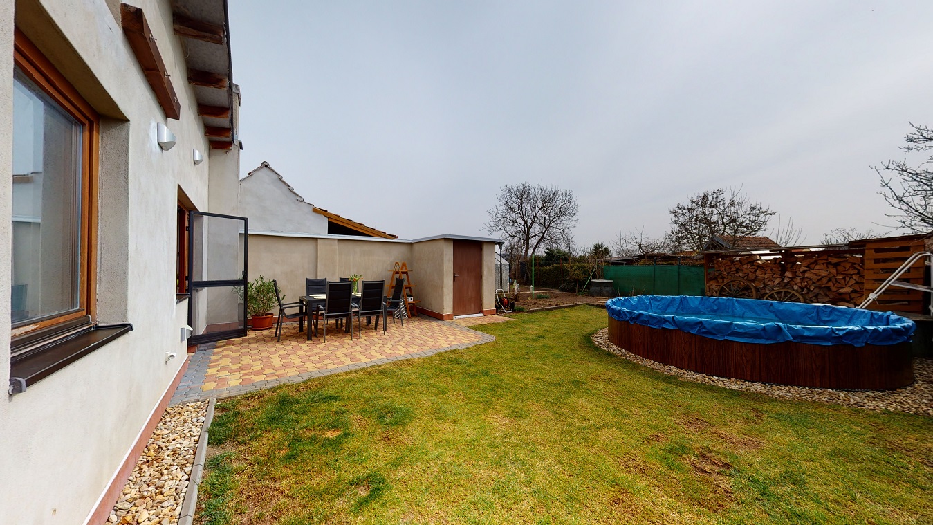 Jedná se o řadový, jednopodlažní dům se dvorkem a zahradou s bazénem.