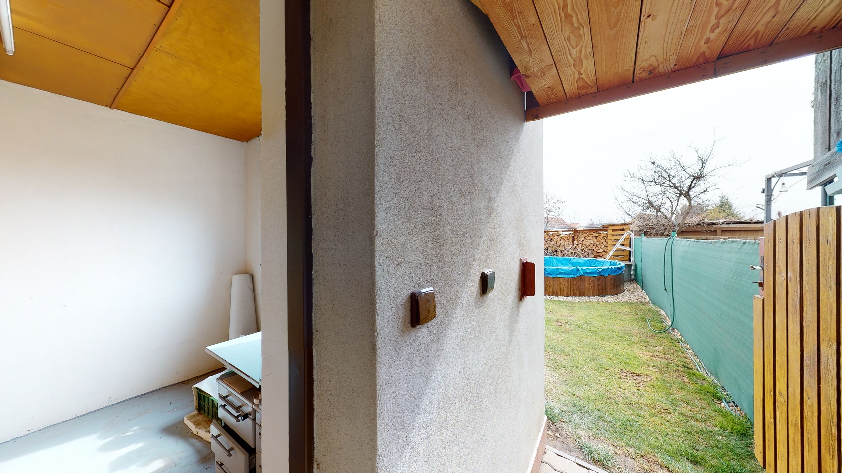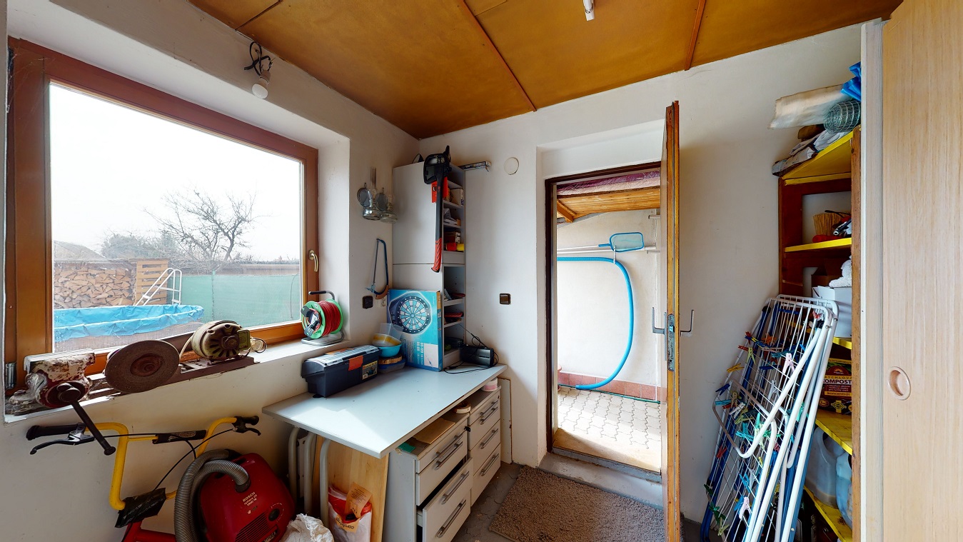 Zahrada a dvorek slouží jak pro relaxaci, hraní pro děti, ale nabízí se zde také místo pro pěstování ovoce a zeleniny. Součástí venkovní stavby jsou dvě dílny, které můžou posloužit jako prostor pro nářadí, uskladnění zahradního nábytku nebo také jako úschovna pro Vaše sportovní vybavení.