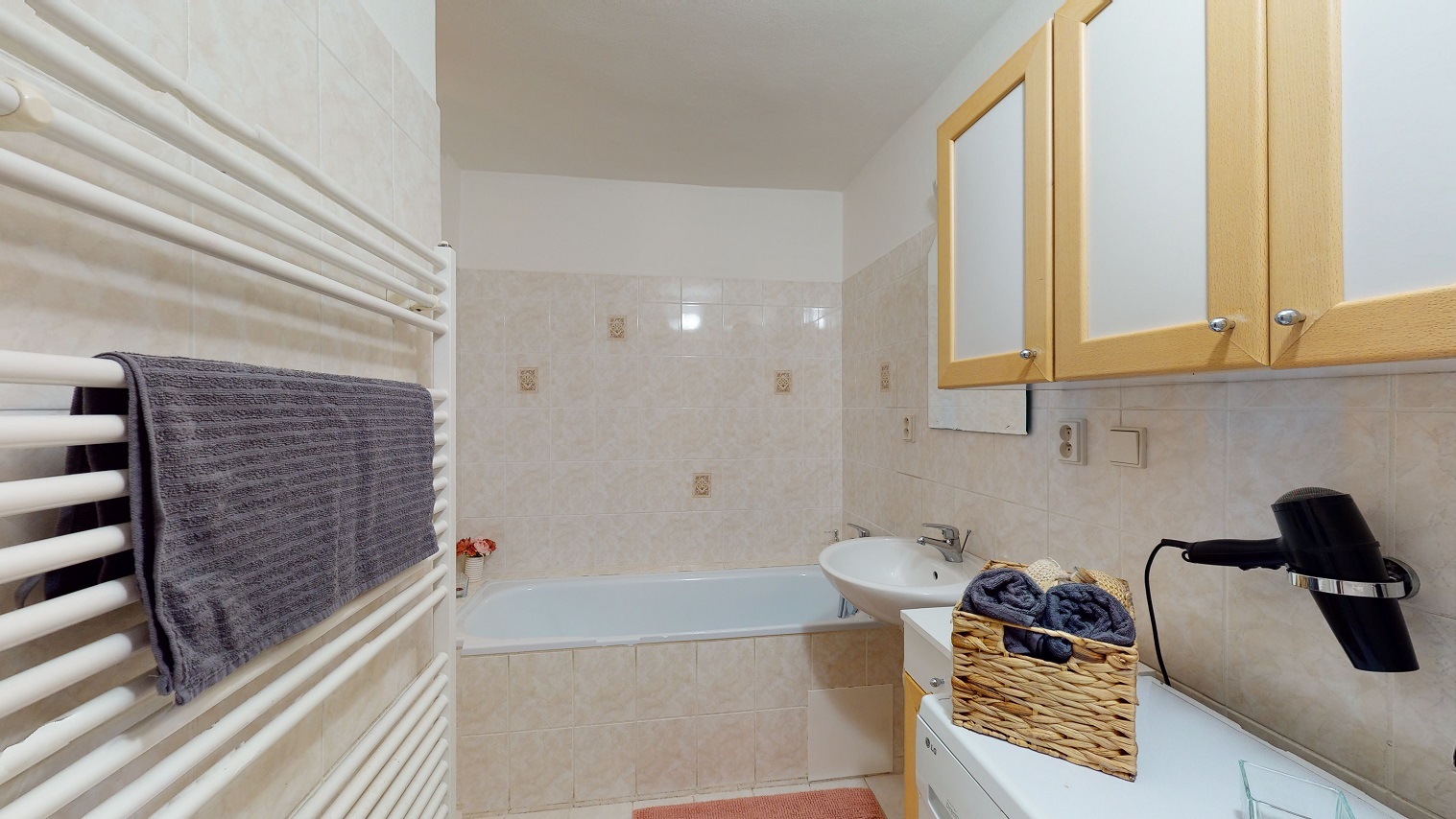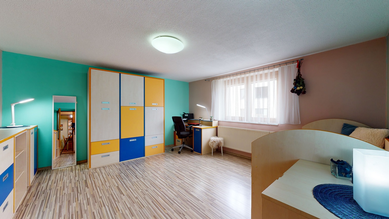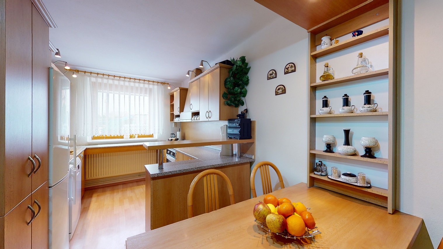Dům je v hezkém a udržovaném stavu a je vhodný k okamžitému nastěhování bez nutnosti dalších úprav či rekonstrukce. V interiéru najdete dostatek prostoru i soukromí. Velkou výhodou je zde samostatná kuchyně se spotřebiči a oknem, velkorysý obývací pokoj s krbem, který je umístěný přímo u vchodu na zahradu. Jsou zde dále tři opravdu velké pokoje, koupelna s vanou a sprchovým koutem a také samostatná toaleta. Rozměry jednotlivých obytných místností včetně technické místnosti a komory, která je také součástí interiéru najdete v přiloženém 3D půdorysu.