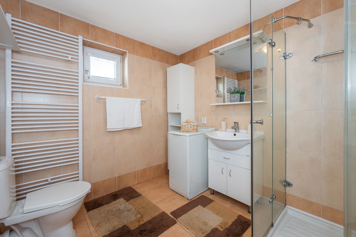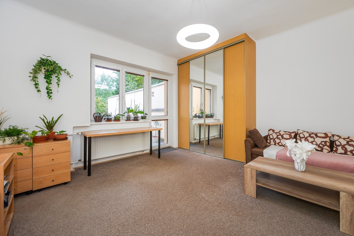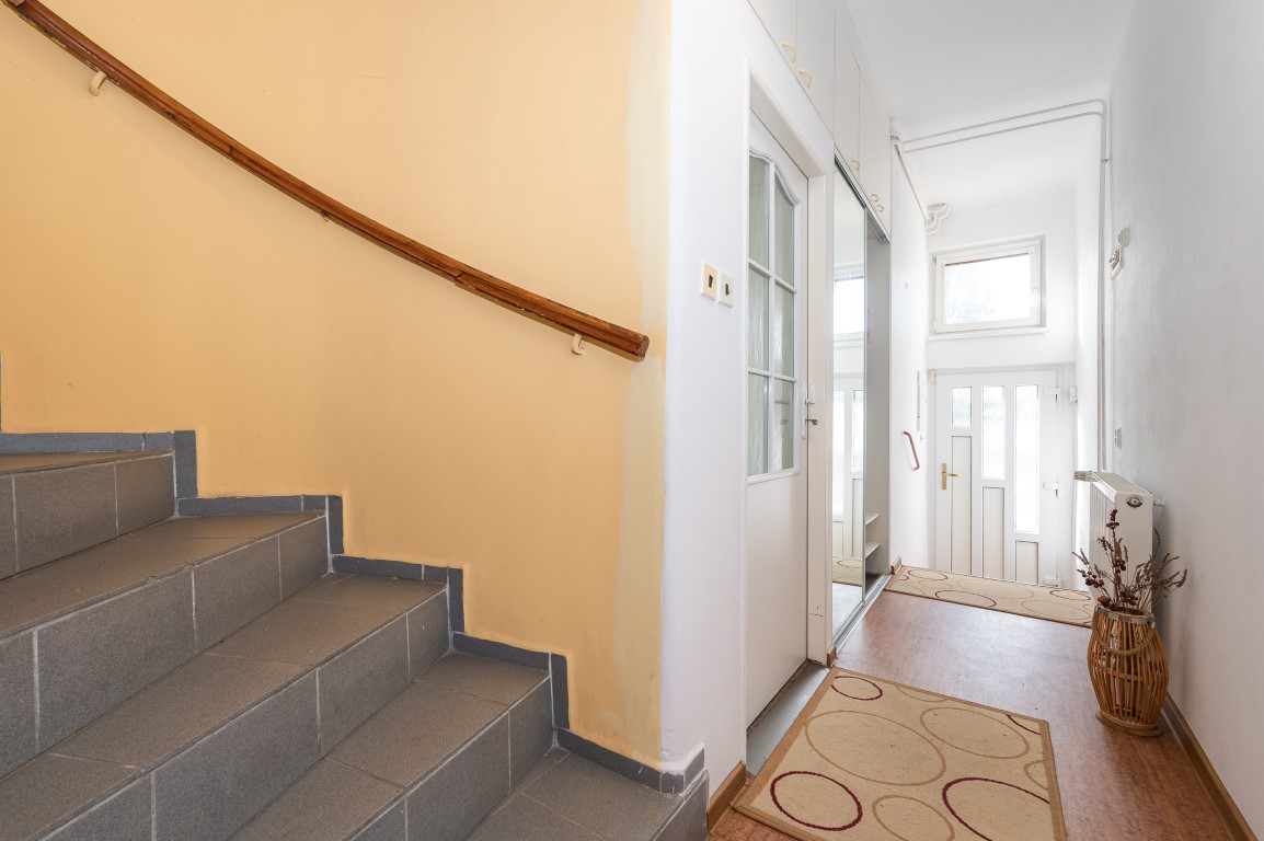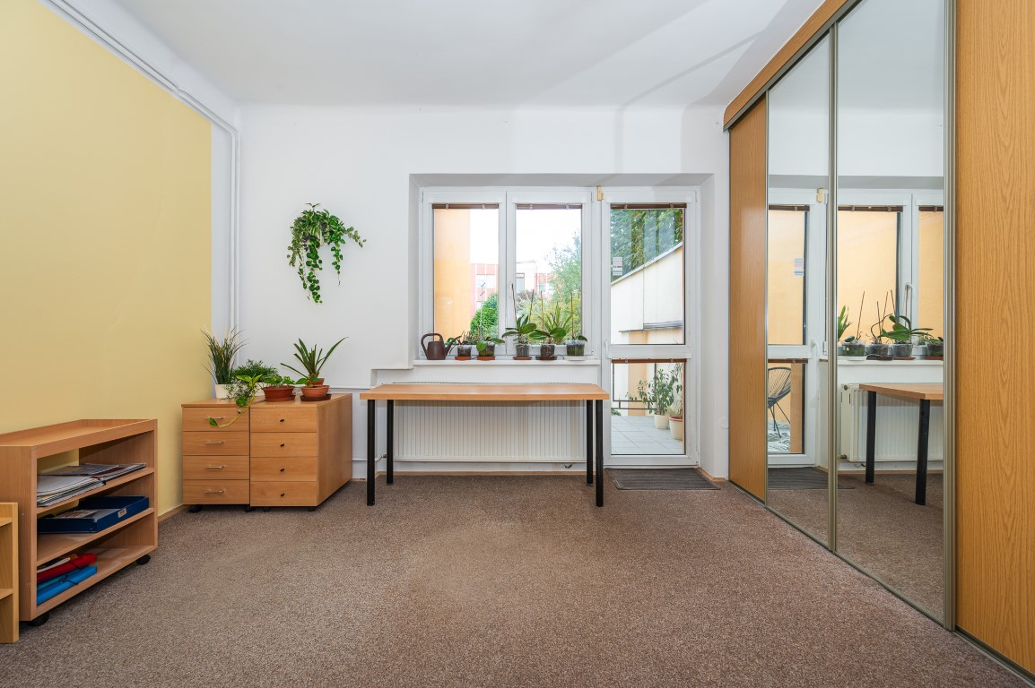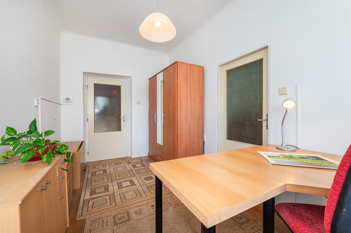 Dále je tu velká koupelna a samostatné WC. V chodbě vestavné skříně. Obytná plocha 67,21 m2.