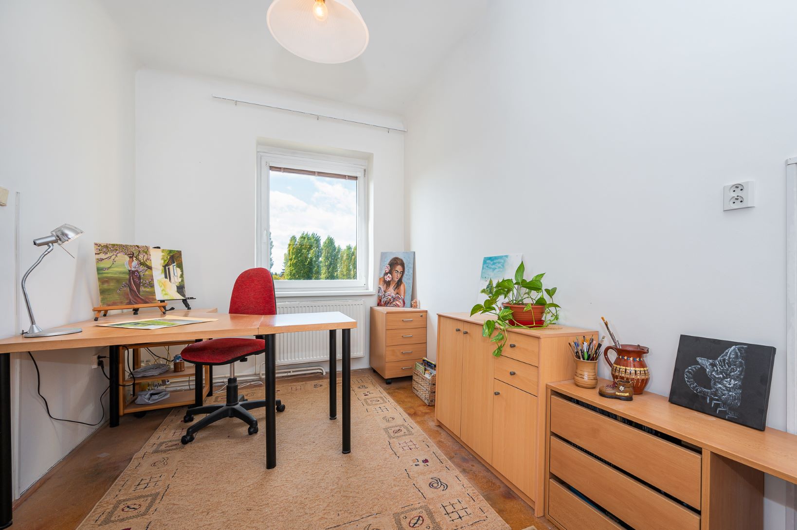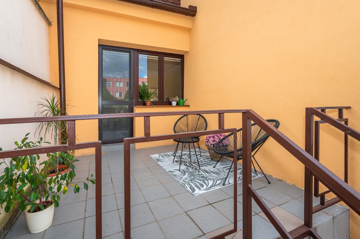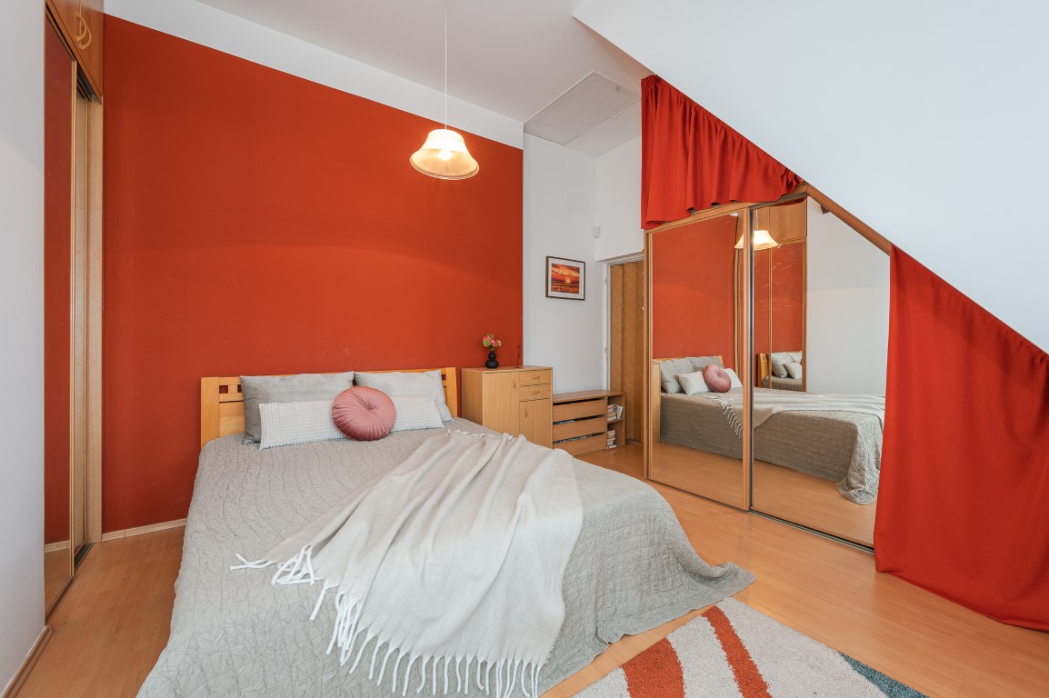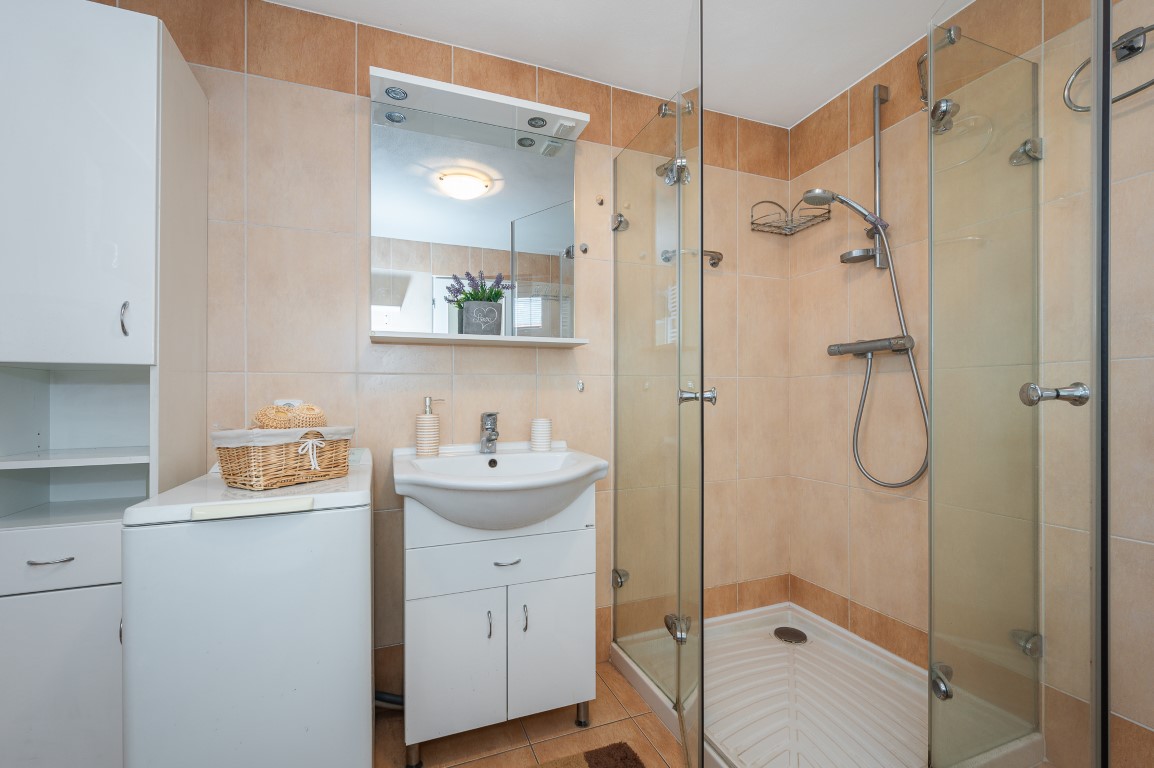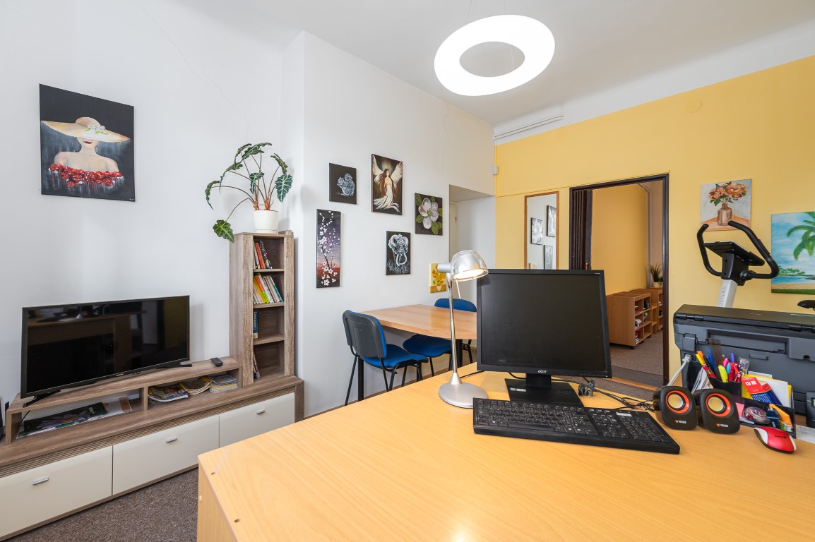 Dále je tu velká koupelna a samostatné WC. V chodbě vestavné skříně. Obytná plocha 67,21 m2.