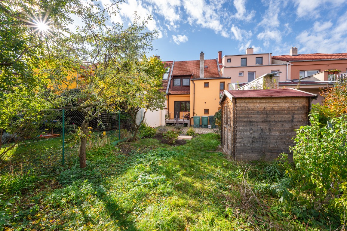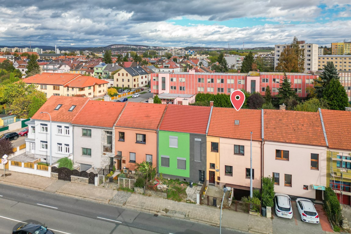 Ve výhradním zastoupení majitele nabízím k prodeji řadový rodinný dům o dispozici 5+1 s garáží a zahradou na ulici Hněvkovského, Brno – Komárov.