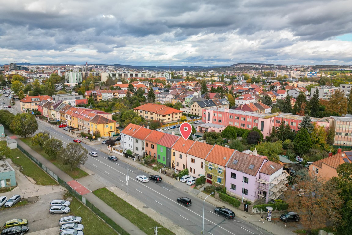 V okolí veškerá občanská vybavenost, velmi dobrá dopravní dostupnost s napojením na dálnice, zastávka MHD jen pár kroků od domu. V těsné blízkosti supermarket LIDL. Do centra Brna se dostanete cca za 10 min MHD.