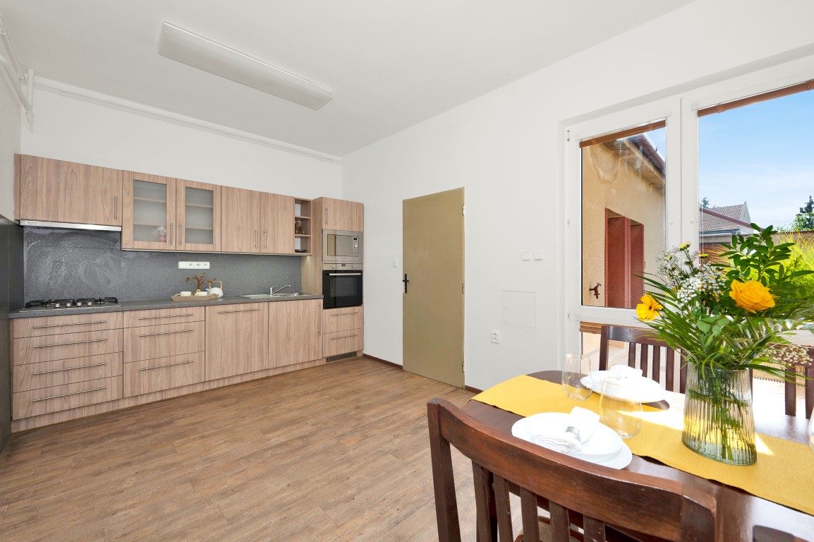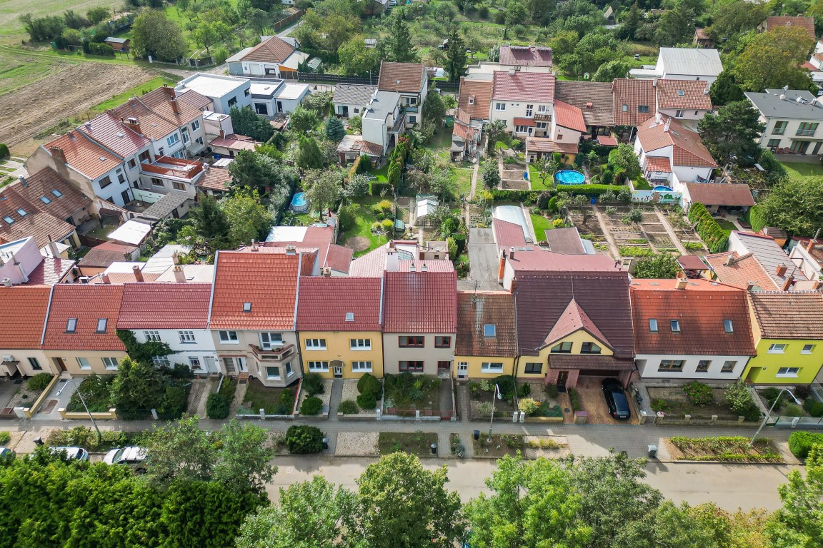 A co takhle rodinný dům 4+1 v klidné lokalitě Brno-Tuřany. Tento řadový dům se nachází na pozemku o velikosti 338 m², nabízí užitnou plochu 158 m², obytnou plochu 108m², předzahrádku, terasu, dvorek 30 m² a zahradu 128 m².
