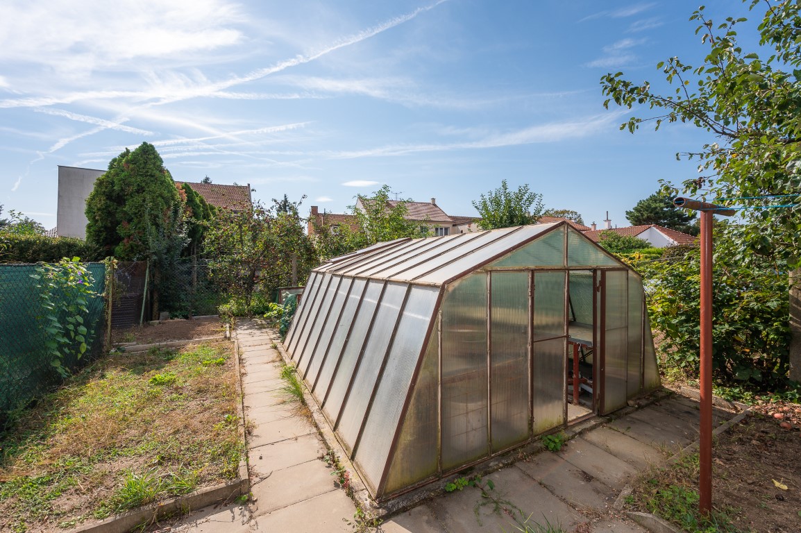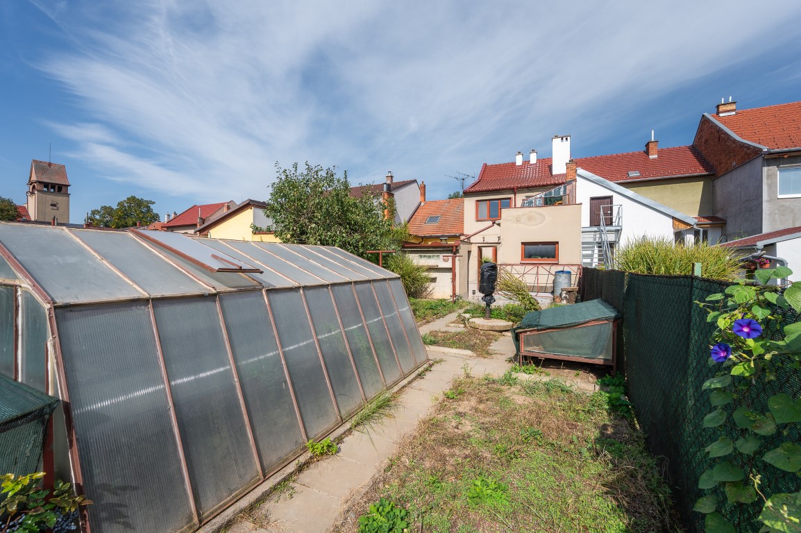 Dům má také předzahrádku, která zajišťuje soukromí od ulice, a prostornou zahradu se skleníkem a vlastní studnou, ideální pro milovníky zahradničení nebo pro trávení času s rodinou.